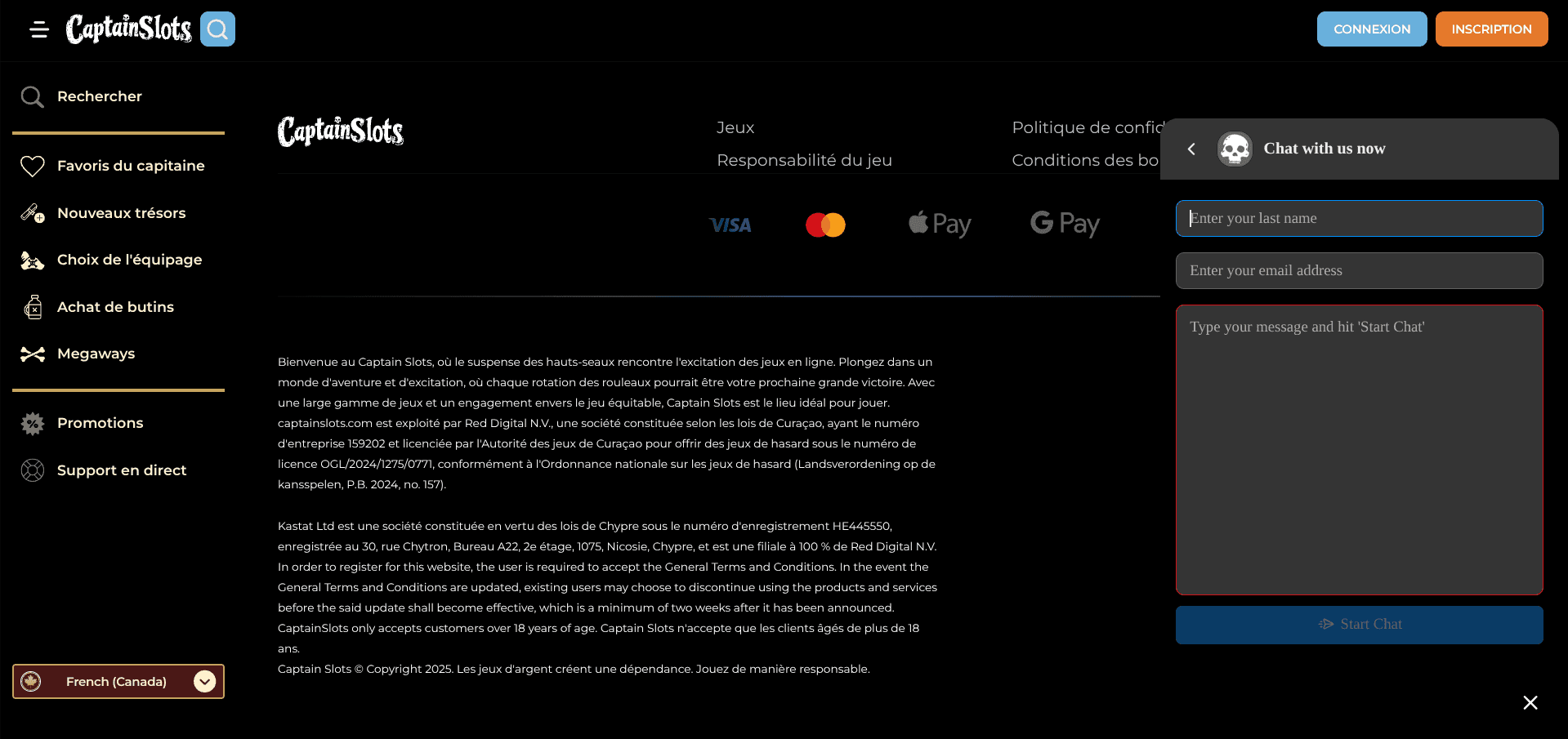 Captain Slots est un casino en ligne particulièrement récent. Celui-ci a vu le jour en juillet 2025. Il est détenu par Red Digital N.V., qui est une entreprise spécialisée dans l’univers du iGaming. Celle-ci détient plusieurs casinos, dont Julius Casino qui avait fait énormément parler pour son incroyable bonus de bienvenue de 3.000 euros et free spins.