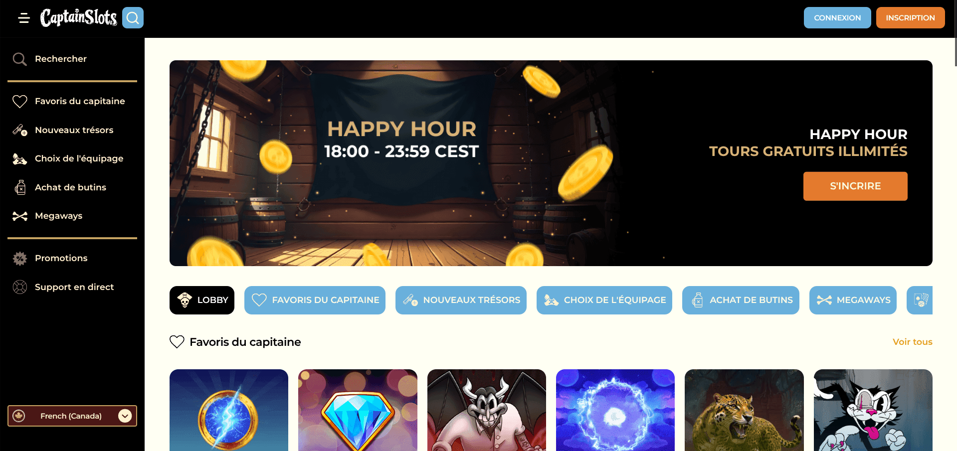Jeux animés en direct sur Captain Slots