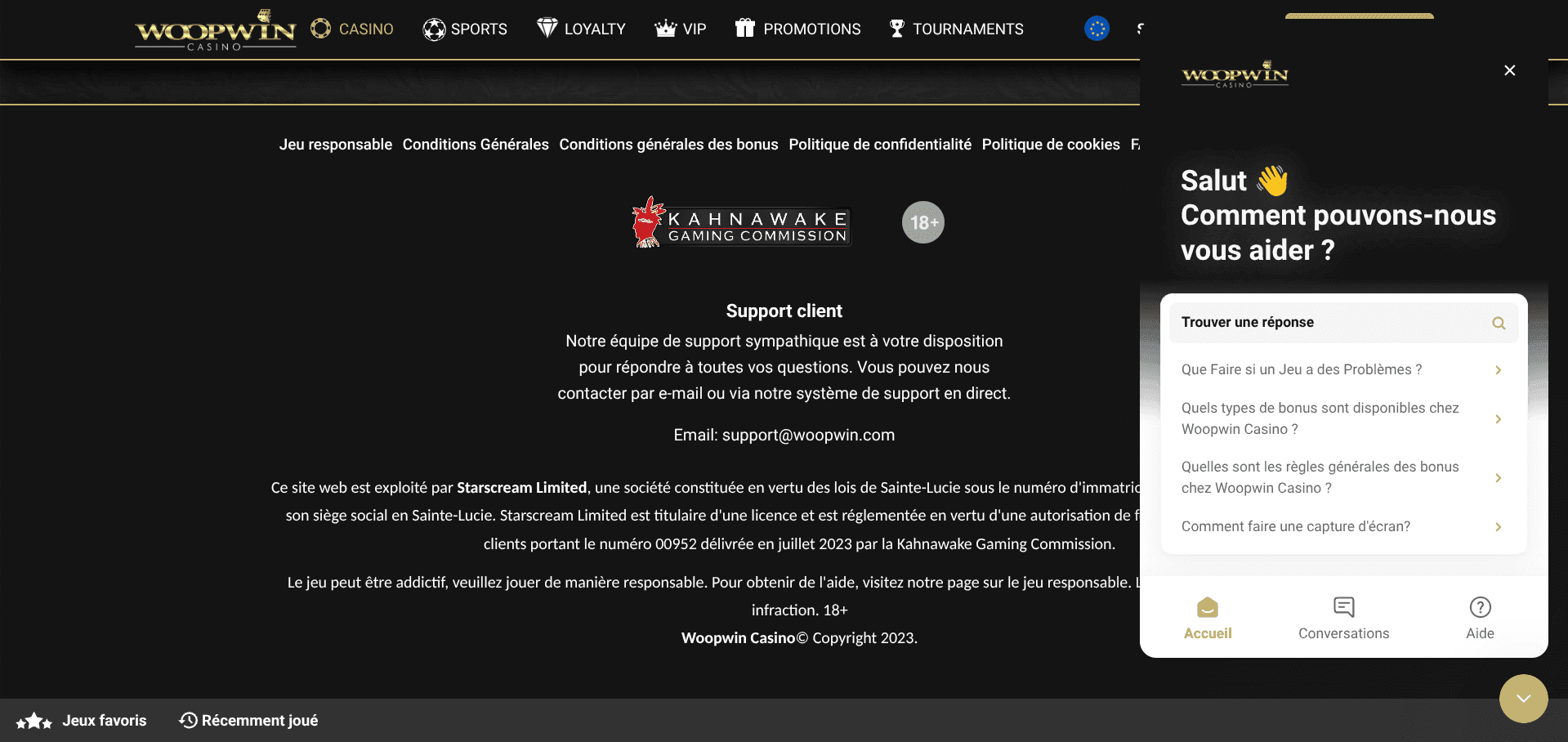 Pour contacter le service client du casino en ligne Woopwin, voici comment procéder :