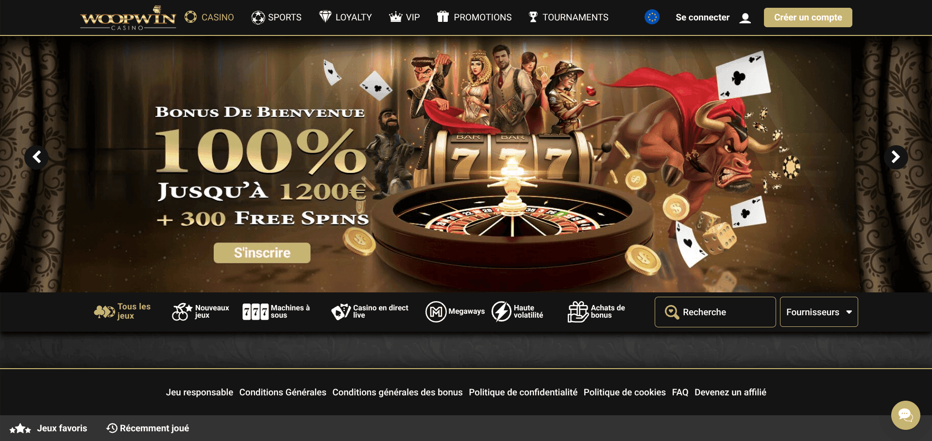 Woopwin est un casino en ligne accessible en France, depuis 2023. Propriété de Starscream Limited, il se démarque grâce à ses limites de retraits particulièrement élevées, mais aussi et surtout… L’absence de wager, sur les gains que vous allez réaliser sur vos free spins.